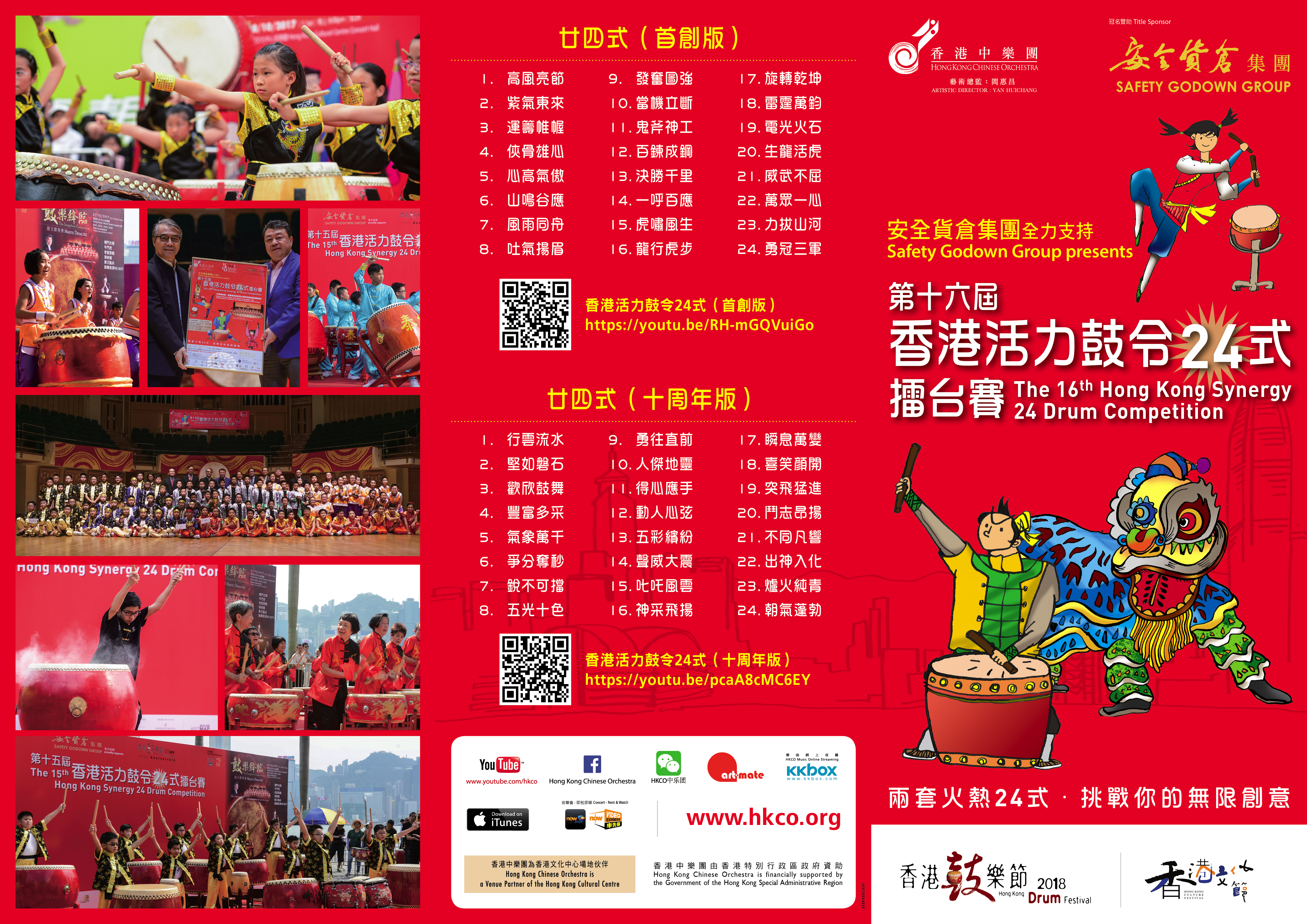 參賽人數不可少於4人,表演曲目必須按照主辦機構提供之鼓譜為標準,不得隨意改動否則將有機會被取消資格。